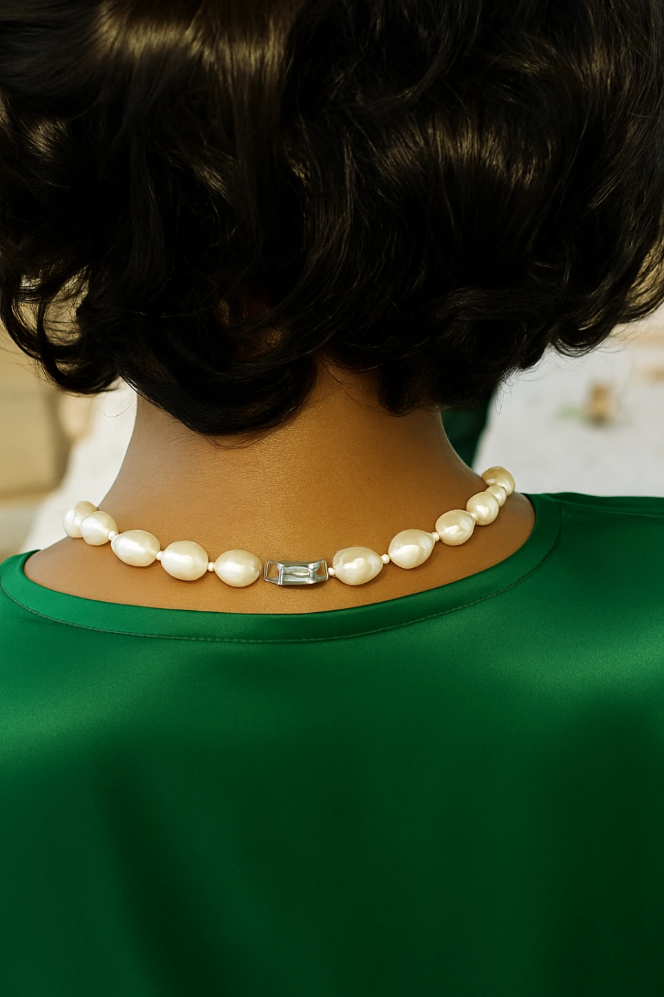 Experience timeless elegance with our freshwater pearl necklace, gracefully adorned with a side-set pendant. Perfectly paired with a classic blouse, this piece embodies sophisticated style and gentle beauty, making it an ideal choice for those who cherish understated luxury. Elevate your look and let every moment shine with the subtle charm of genuine pearls.